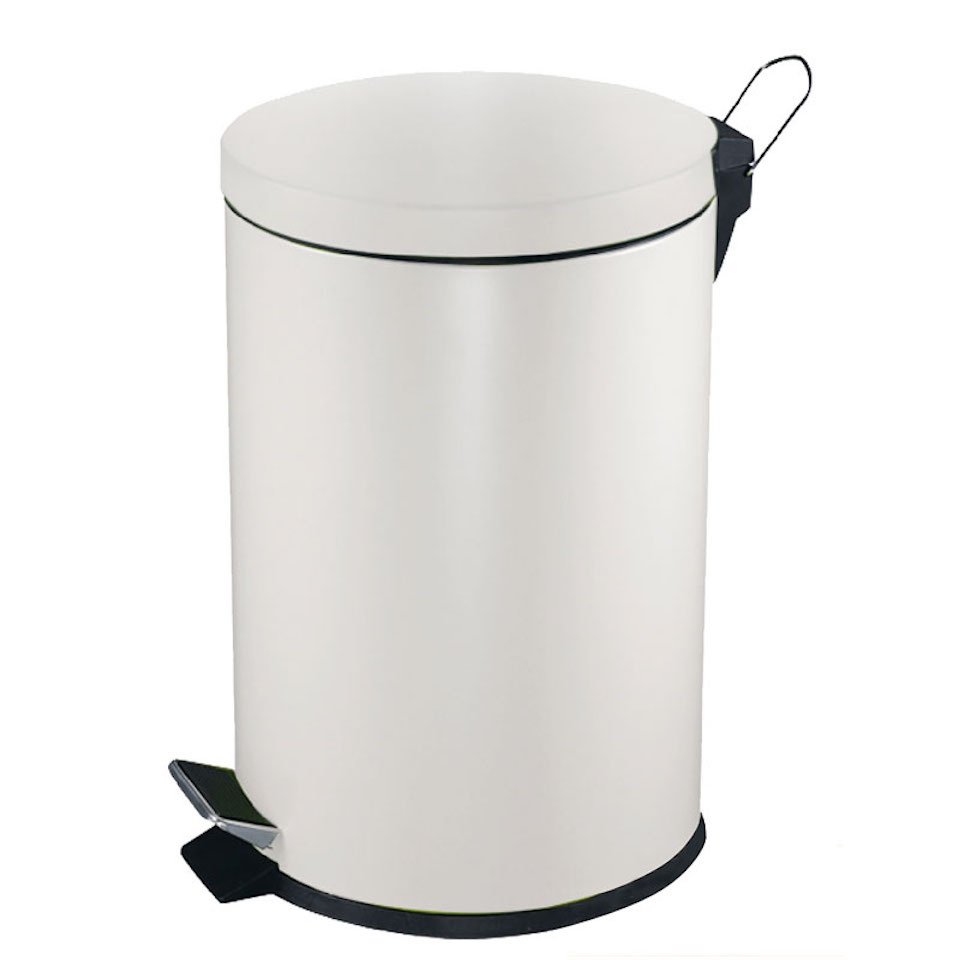 PROREGAL Runder Tretabfallsammler mit herausnehmbaren Kunststoff-Inneneimer | 5 Liter, HxBxT 28,4x24,5x20cm | Weiß
