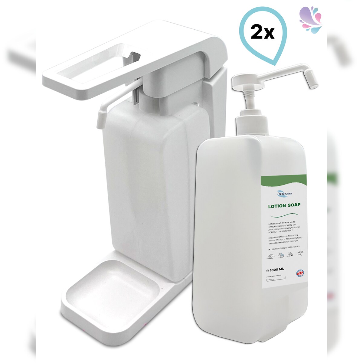 SET: Blanc Hygienic Hebelspender 1.000ml + 2x 1 Liter Lotion Cremeseife mit vormontierter Pumpe