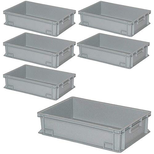 BRB 6er Set Eurobehälter mit 2 Griffleisten 600x400x150 mm, 27 Liter, grau