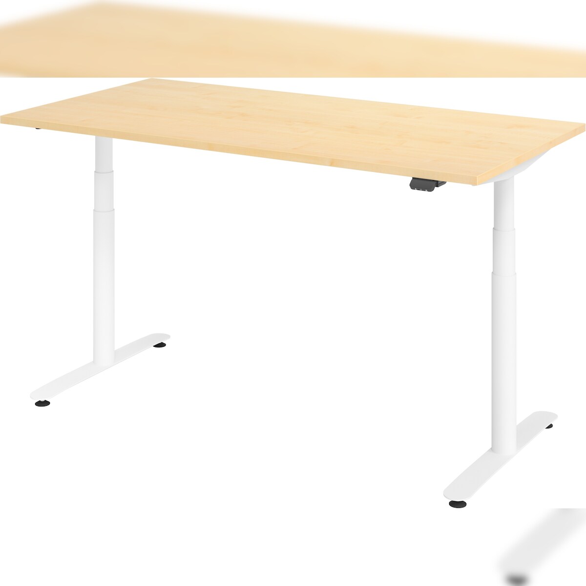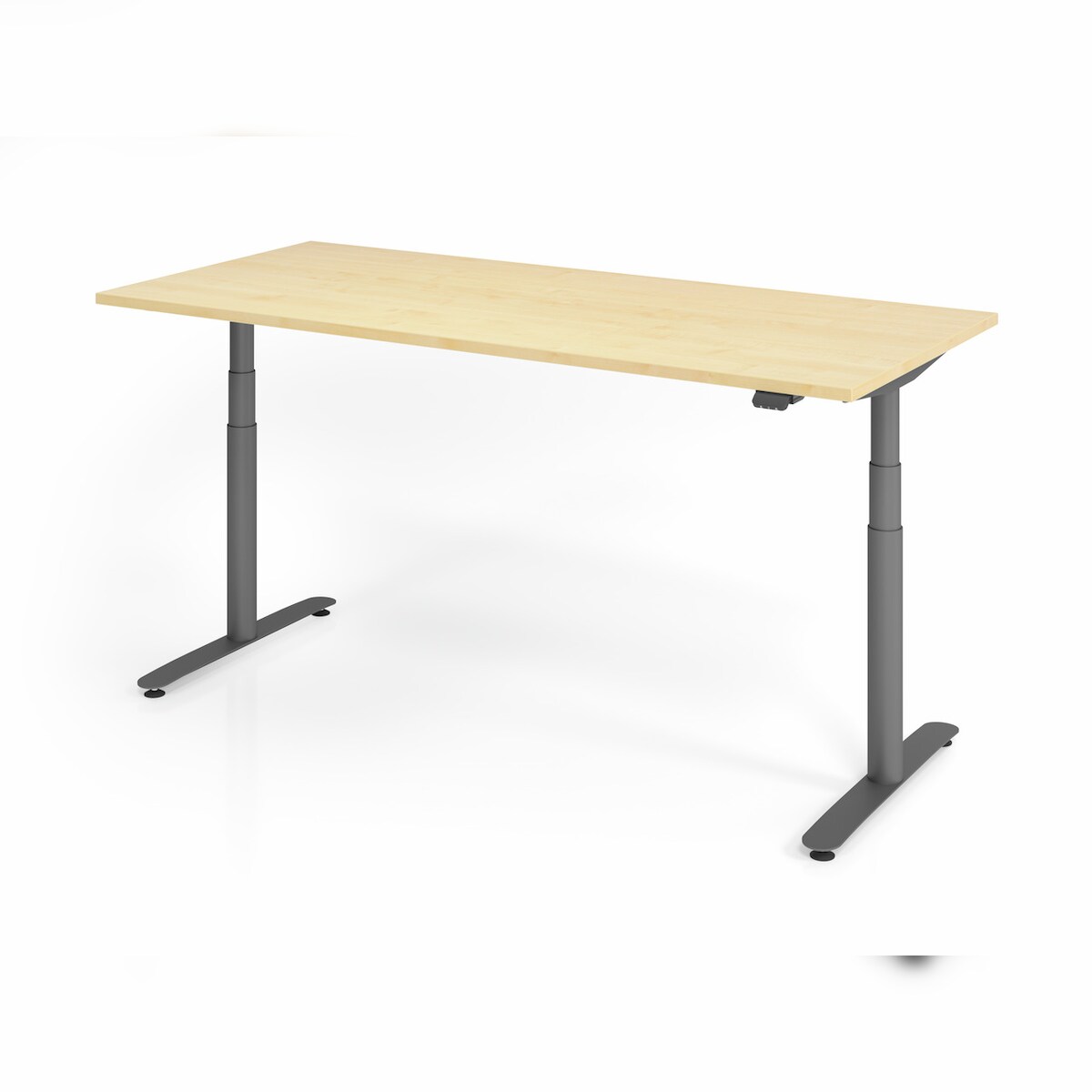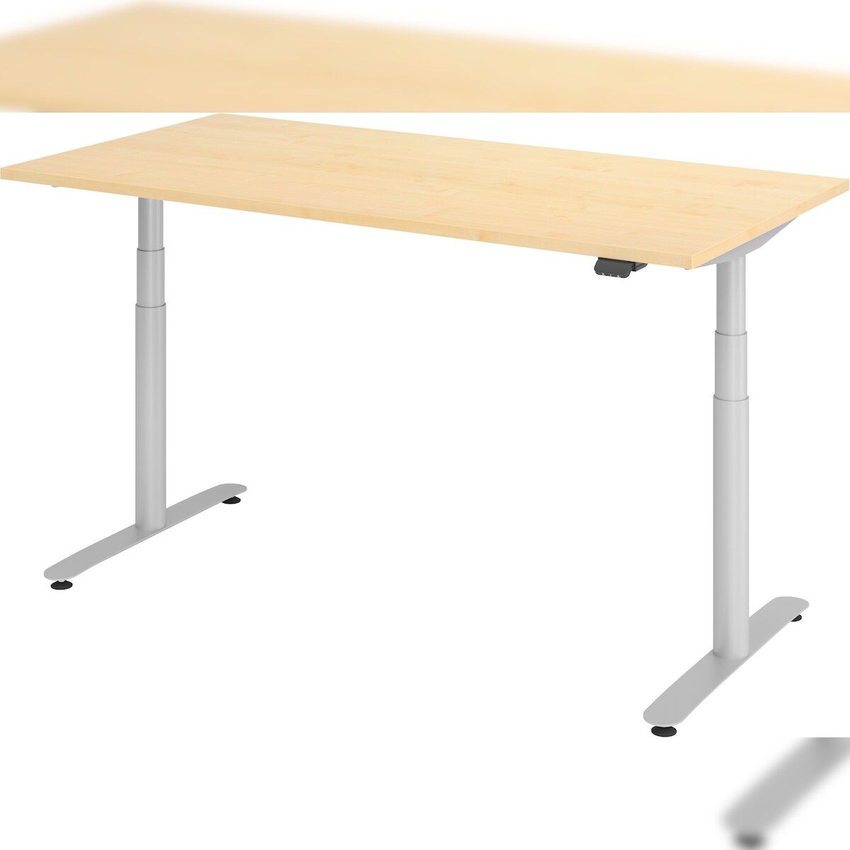 PROREGAL Sitz-Steh-Schreibtisch Rauno | Ahorn | Graues GestellBxT 180x80cm | Höhe 63-127cm | elektrisch stufenlos höhenverstellbar | T-Fuß Gestell