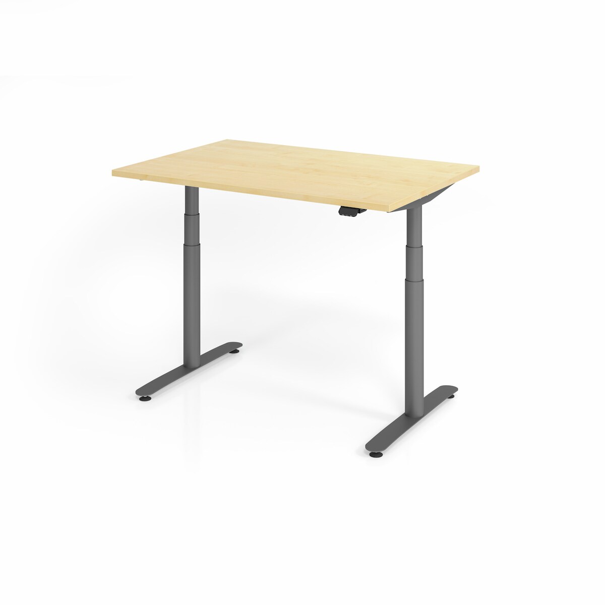 PROREGAL Sitz-Steh-Schreibtisch Rauno | Ahorn | Graues GestellBxT 120x80cm | Höhe 63-127cm | elektrisch stufenlos höhenverstellbar | T-Fuß Gestell