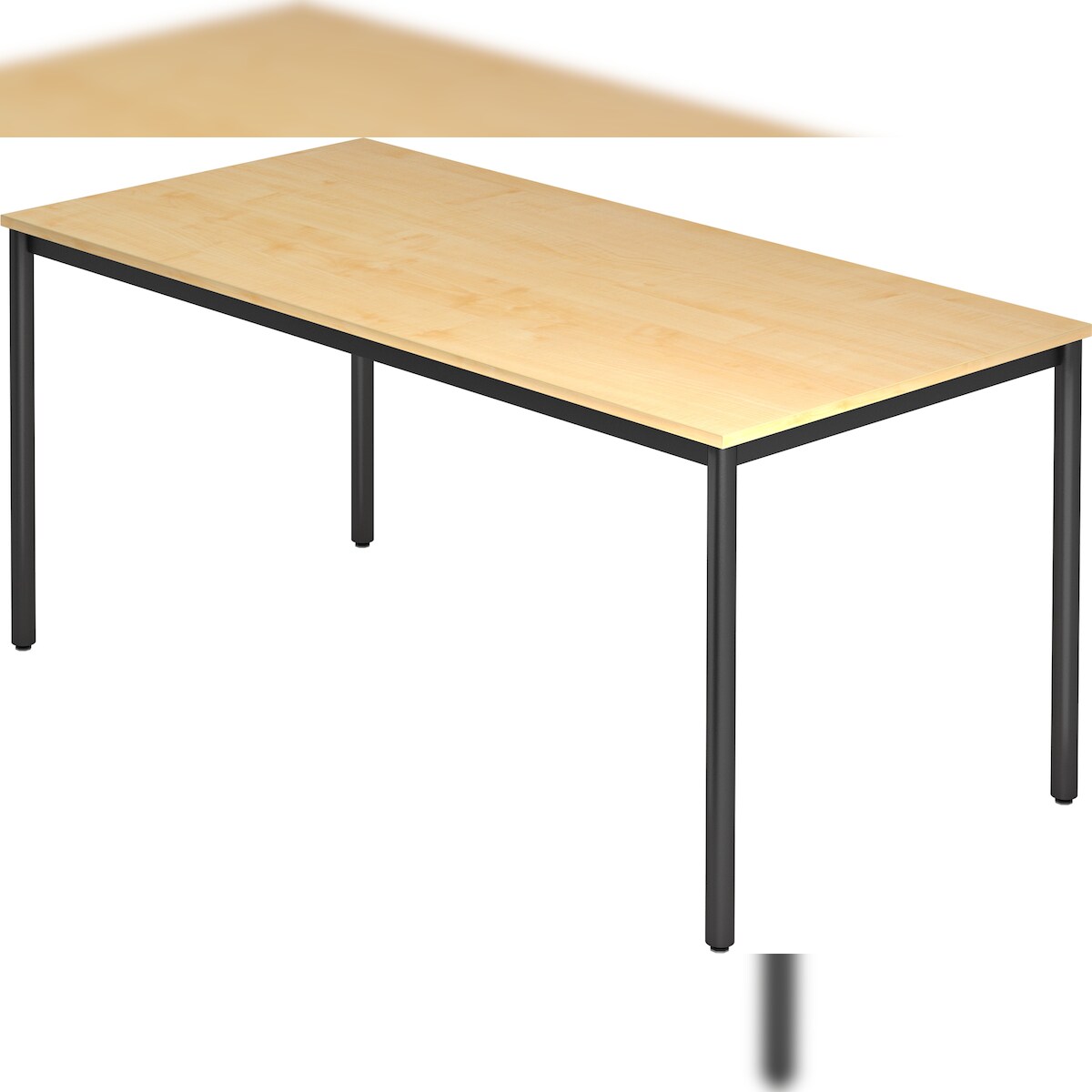 bümö Multifunktionstisch Ahorn, Tisch 160 x 80 cm, Tischfuß rund in schwarz - einfacher Tisch, Besprechungstisch System D-Serie, Konferenztisch,