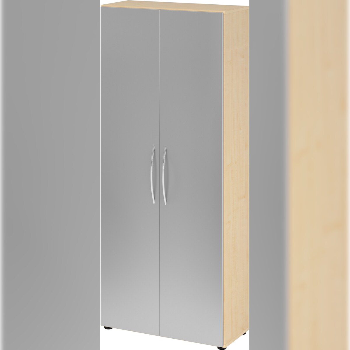 bümö Mehrzweckschrank 80cm breit, Aktenschrank o. Schuhschrank hoch, Schrank mit Regal, Küchenschrank in Ahorn/Silber aus Holz, Vorratsschrank &