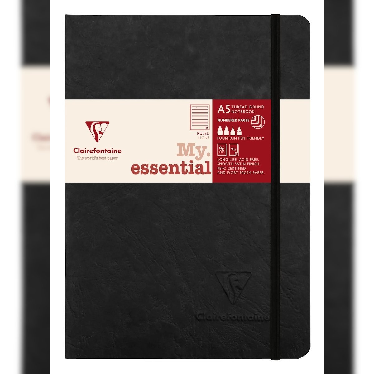 Clairefontaine 5x Notizbuch Age Bag My.essential A5 96 Blatt liniert - Schwarz 793461C