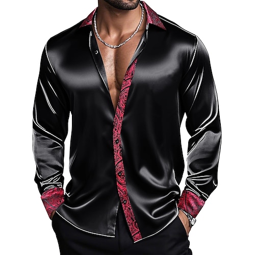 Per uomo Camicia Camicia in raso Camicia elegante Camicia casual Camicia con Bottoni Camicia da Ballo Semplice Matrimonio Feste Argento Rosa Rosso Blu Manica Lunga Bavero Primavera Tutte le stagioni