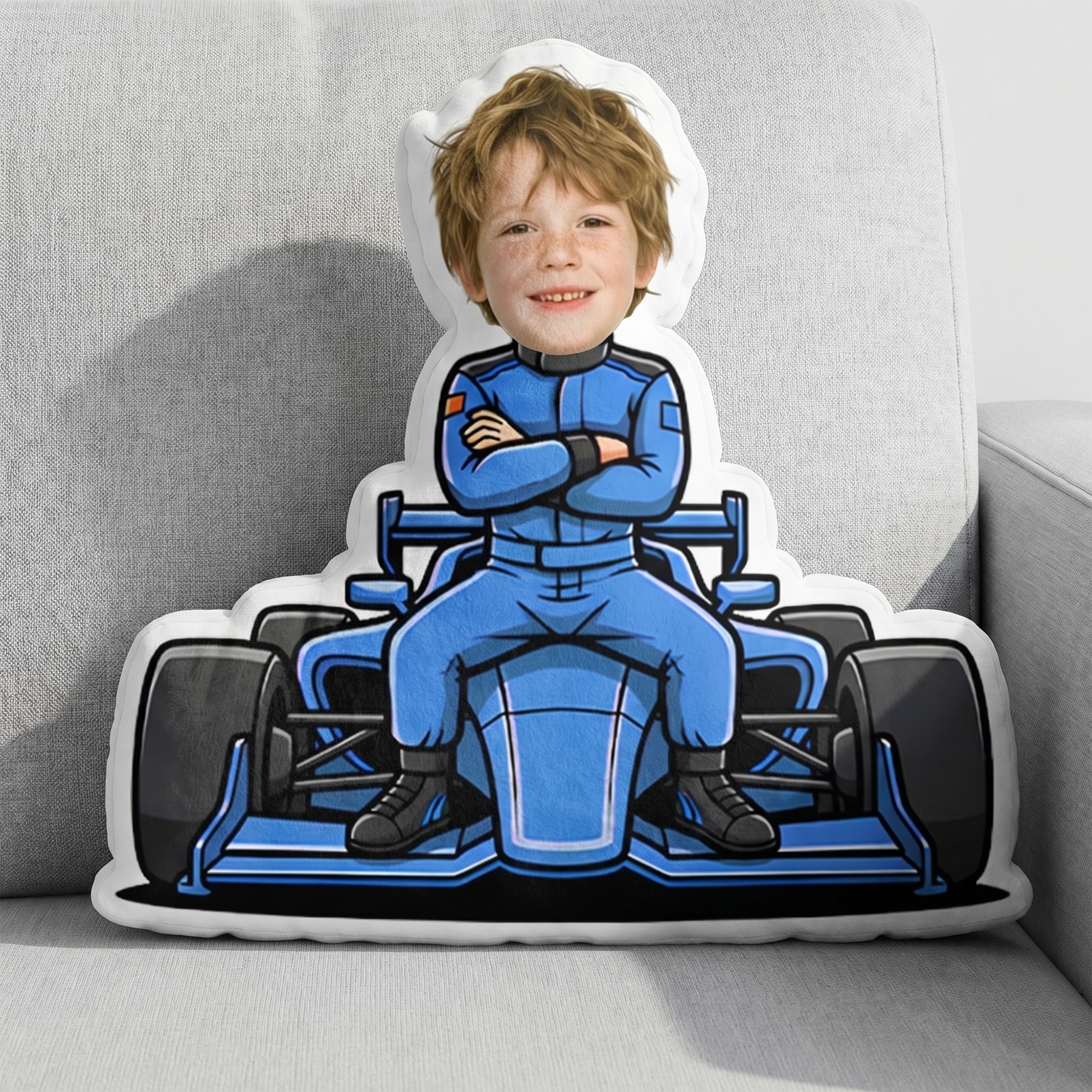Personalisierte Cartoon Racing Car Funny Face Photo Human-Shaped Throw Pillow Home Decor Geburtstag Auto Rennen Geschenk für Racing Lovers Kinder