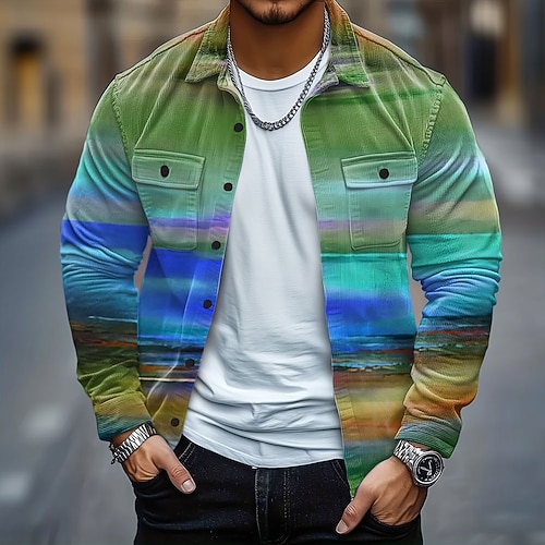 Per uomo Colore sfumato Camicia di Velluto a Coste Giacca-camicia Giacca camicia Manica Lunga Casual All'aperto Abbigliamento Quotidiano Autunno Inverno Collo ripiegato Bottonato Caldo Giacca con