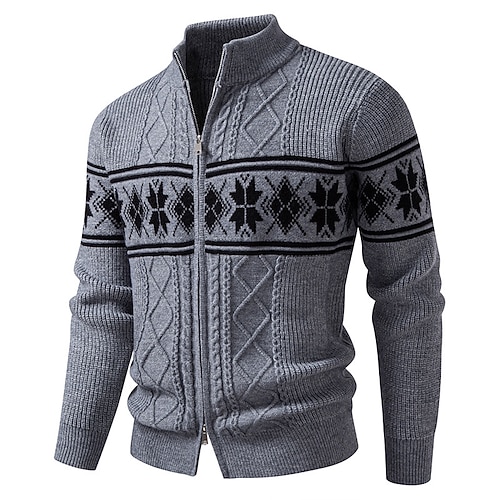 Per uomo Cardigan Maglione Corto Maglione con Zip Maglione a maglia A Coste Maglia Top Regolari Tasca Geometrico Collo alla coreana Moda Classico Vacanza Abbigliamento quotidiano Abbigliamento