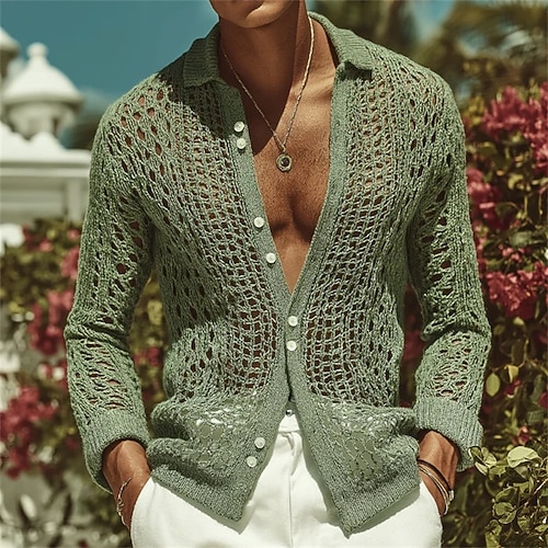 Per uomo Felpa Cardigan A Coste Treccia Maglia Top Regolari Cardigan con Bottoni Lavorato a maglia Tinta unica Collo a scialle Vacanza Moda Casuale Abbigliamento quotidiano Abbigliamento Primavera