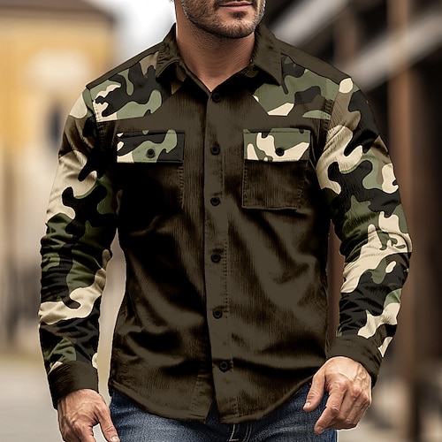 Per uomo Mimetico Camicia di Velluto a Coste Camicia Western Giacca camicia Manica Lunga Vintage Retrò All'aperto Abbigliamento da lavoro Autunno Inverno Collo ripiegato Stampa 3D Camicie da cowboy