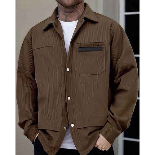 Per uomo Tinta unica Camicia di Velluto a Coste Giacca camicia Sopracamicia Manica Lunga Casual All'aperto Abbigliamento Quotidiano Autunno Inverno Collo ripiegato Bottonato Caldo Giacca con tasche a