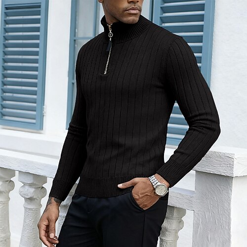 Per uomo Felpa Maglione Maglione con zip a un quarto A Coste Maglia Top Regolari Lavorato a maglia Slim Fit Semplice Collo Alto Maglieria Contemporaneo Casuale Abbigliamento quotidiano Abbigliamento