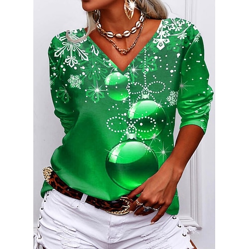 T-Shirt di Natale da donna grafica vintage stilosa classica manica lunga scollo a V top regolari stampa quotidiana grigio/rosso nerobiancorosso nero rosso vino primavera autunno inverno