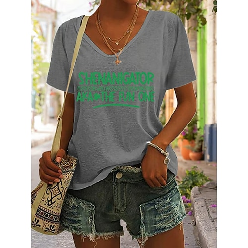 Maglietta da donna per il giorno di San Patrizio grafica trifoglio libellula vintage elegante classico manica corta colletto a V tops regolari stampa quotidiana blu nero verde grigio estate primavera