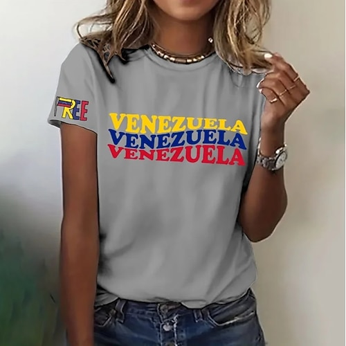 maglietta da donna con pappagallo venezuelano, grafica, lettera, elegante, classica, casual, manica corta, girocollo, top normali, stampa quotidiana, blu, nero, bianco, grigio, estate, primavera