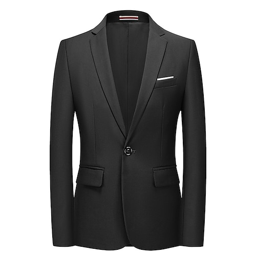 Per uomo Blazer Affari Cocktail party Ricevimento di matrimonio Moda Casual Primavera Autunno Poliestere Colore Solido / Tinta Unita Tasca Bottoni Confortevole Monopetto Giacca Marrone Scuro Nero