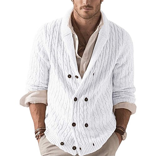 Per uomo Felpa Maglione elegante Cardigan A Coste Treccia Maglia Top Regolari Lavorato a maglia Semplice Collo a scialle Vacanza Moda Casuale Abbigliamento quotidiano Abbigliamento Primavera Autunno