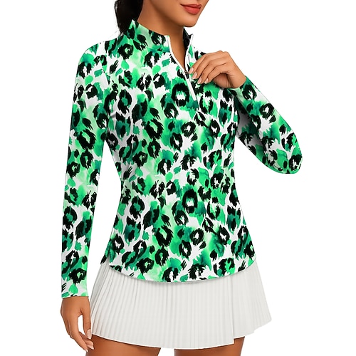 Per donna Animale Leopardo Top Polo da golf Maglia da tennis Manica Lunga Stampato Zip a un quarto Pullover Protezione UV Elastico Traspirante Tennis Golf Pickleball Collo alla coreana Collo con zip