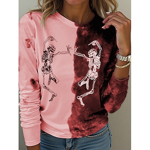 T Shirt da donna Scheletro Teschi Grafica Scheletro Moda Vintage Elegante Manica Lunga Collo Girotondo Magliette Regolari Giorno del Weekend Stampa Giallo Rosa Viola Verde Estate Primavera Autunno