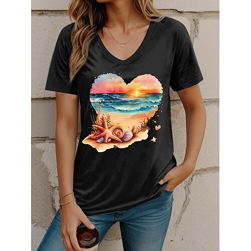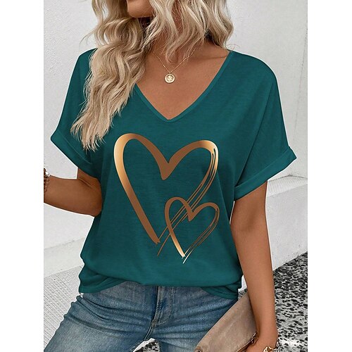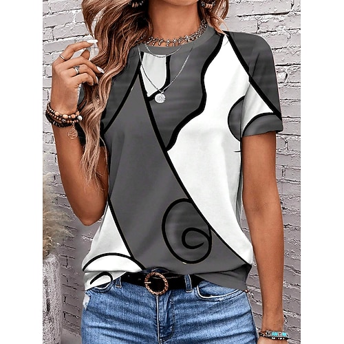 Per donna maglietta Floreale Informale Manica corta A V Top regolari Giornaliero Stampa Grigio Estate