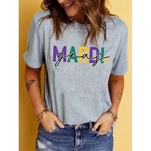 Per donna maglietta Alfabetico USA Informale Manica corta Rotonda Top regolari Da mare Giornata dell'indipendenza Stampa Bianco Estate