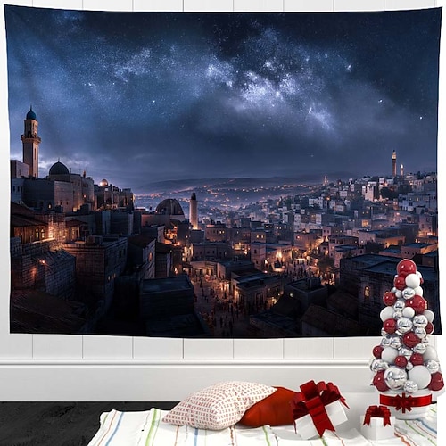 Arazzo natalizio con scena innevata – arazzo da parete con paesaggio invernale da favola, arazzo decorativo con motivo di albero di Natale e paesaggio forestale con fiocchi di neve per la casa, la