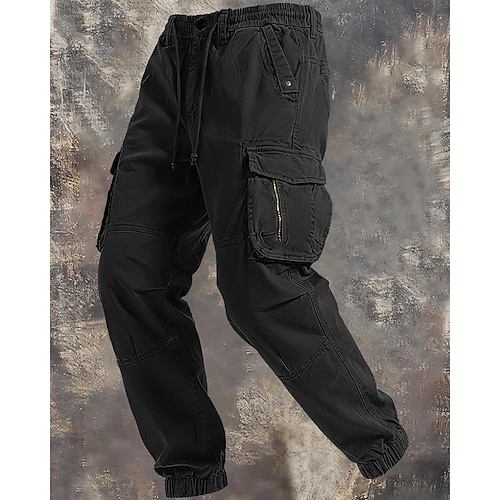 Per uomo Pantaloni Cargo Joggers Pantaloni Elastico in vita Coulisse Multi-tasche Semplice Indossabile All'aperto Quotidiano Campeggio Escursionismo Moda Classico Nero Verde militare