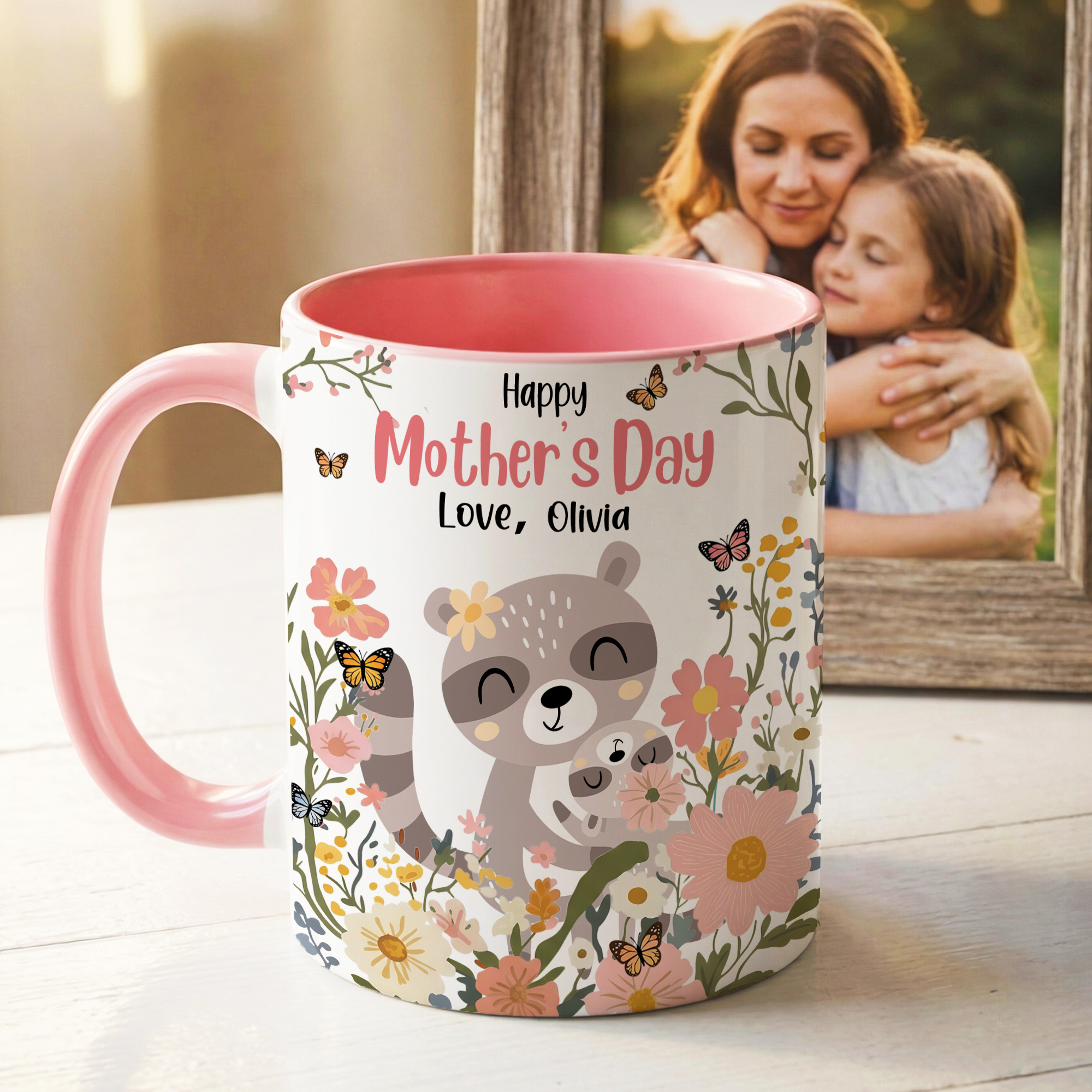 Personalizado colorido animal de dibujos animados de diseño floral 11 oz 15 oz Taza de cerámica con nombre Día de la Madre Regalo para Mamá Mujer