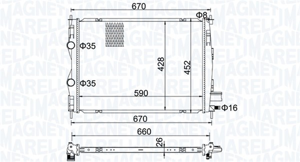 MAGNETI MARELLI Kühler, Motorkühlung 350213110400 für HYUNDAI 25310-17000 25310-17001 25310-17100