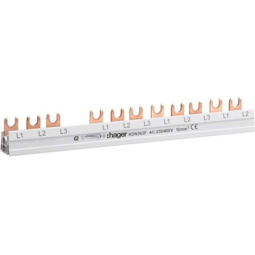 Hager Phasenschiene 3polig+N Gabel. 10mm² 12M für 1 FI-4p.+8LS-1p.