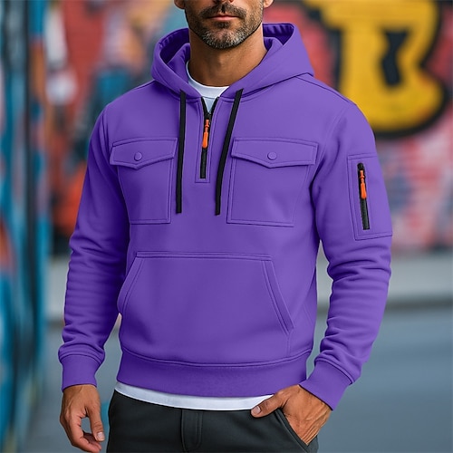 Per uomo Felpa con cappuccio Felpa con cappuccio in pile Felpa con cappuccio tattica Nero Verde militare Grigio scuro Con Cappuccio Semplice Tasca Sport Outdoor Casuale Quotidiano Streetwear Cool
