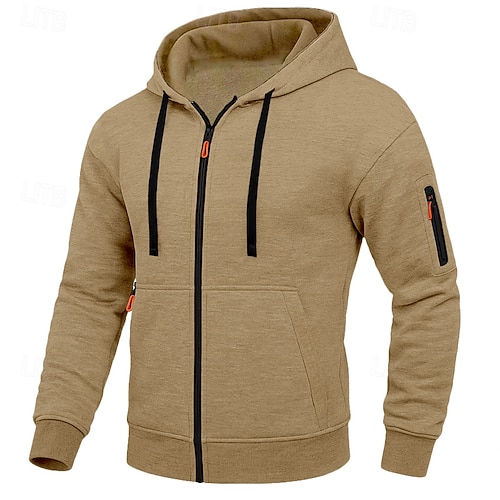Per uomo Felpa con zip Felpa con cappuccio in pile Marrone giallastro Nero Verde militare Blu marino Marrone Girocollo Semplice Con zip Tasca Frontale Tattico Sport Outdoor Casuale Streetwear Cool