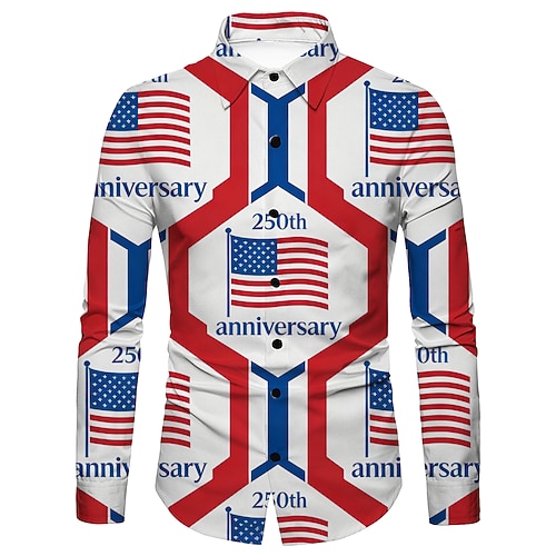 Per uomo Bandiera degli Stati Uniti FREEDOM 250° anniversario degli Stati Uniti Camicia Camicia con Bottoni Manica Lunga Vintage Retrò Ferie Casual Quotidiano Primavera Autunno Collo ripiegato Stampa