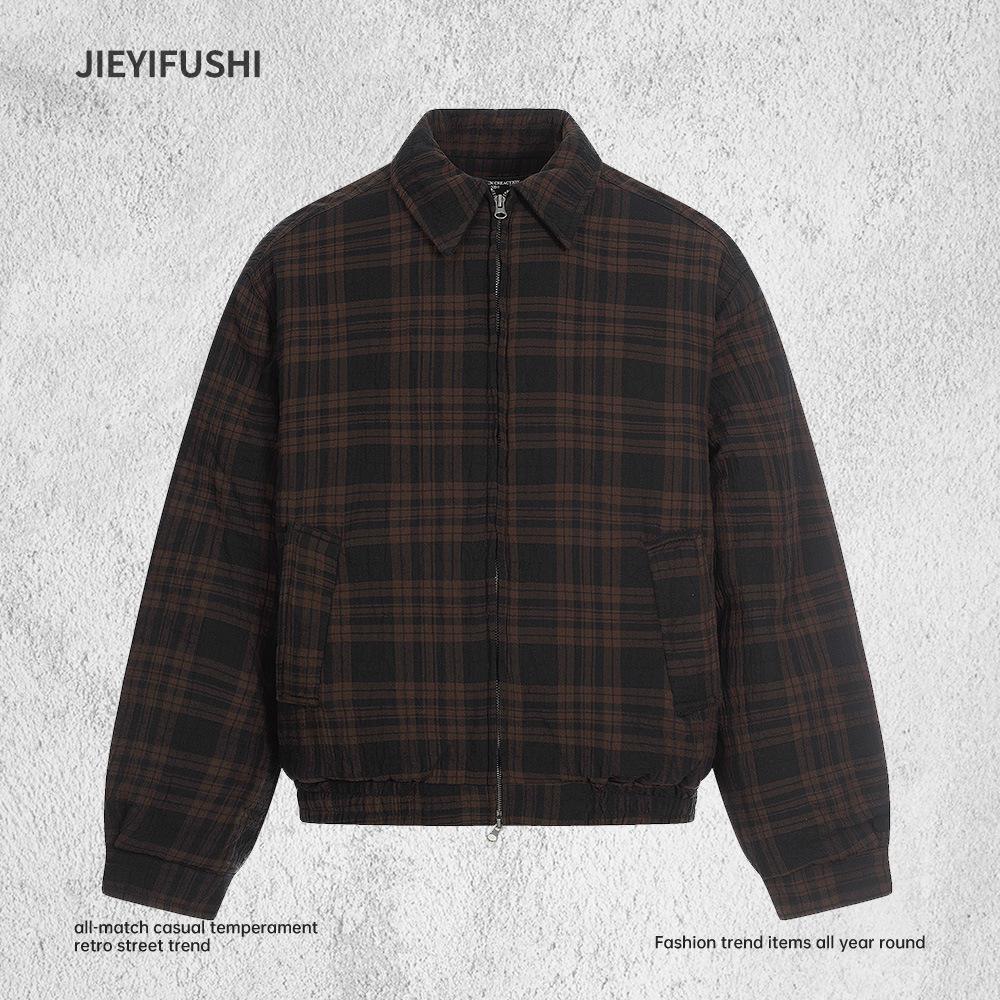 Men's Winter Color Block Jacket - Velvet Lined, Loose Fit, Cropped, Trendy Lapel Outerwear cm
