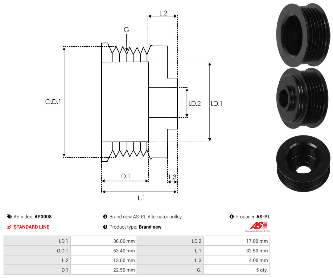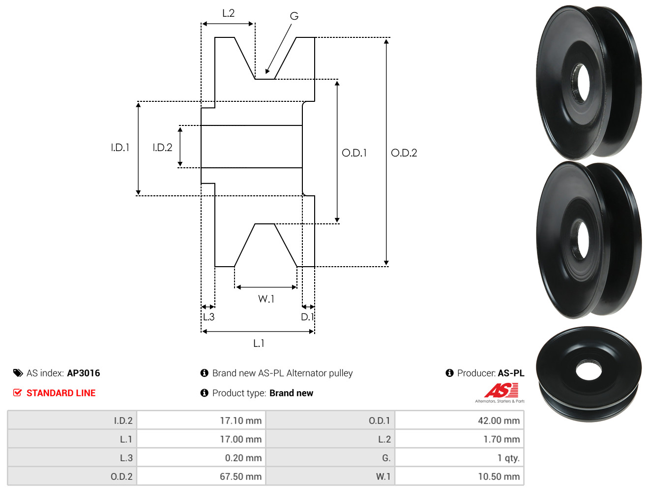 AS-PL Riemenscheibe, Generator AP3016 Universal