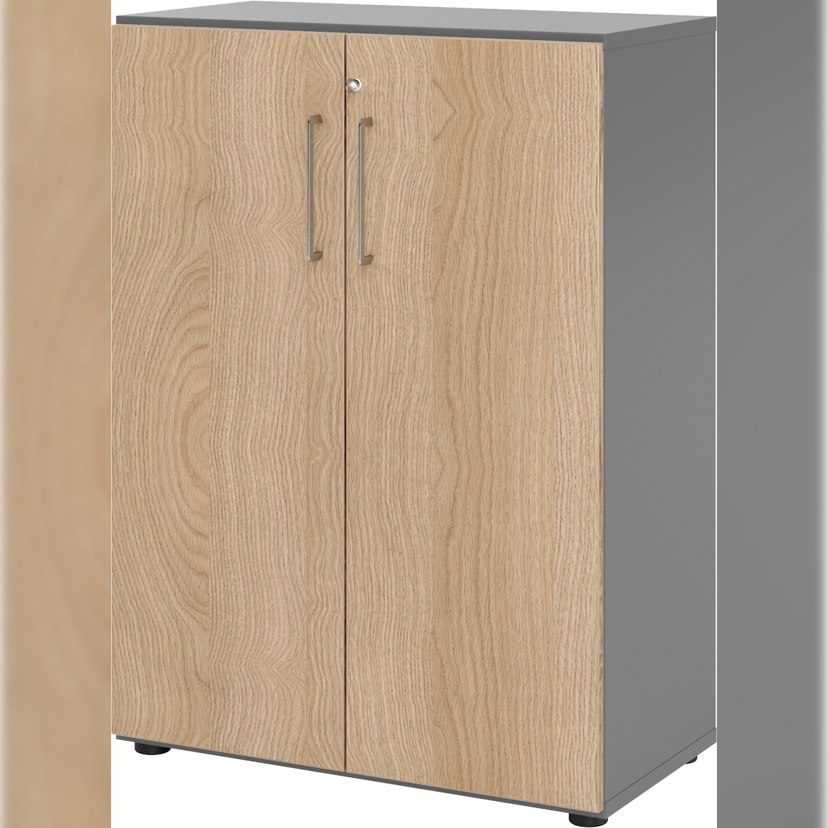 bümö Aktenschrank abschließbar, Büroschrank Holz 80cm breit in Graphit/Eiche - abschließbarer Schrank mit Aktenregal für's Büro & Arbeitszimmer, Büro