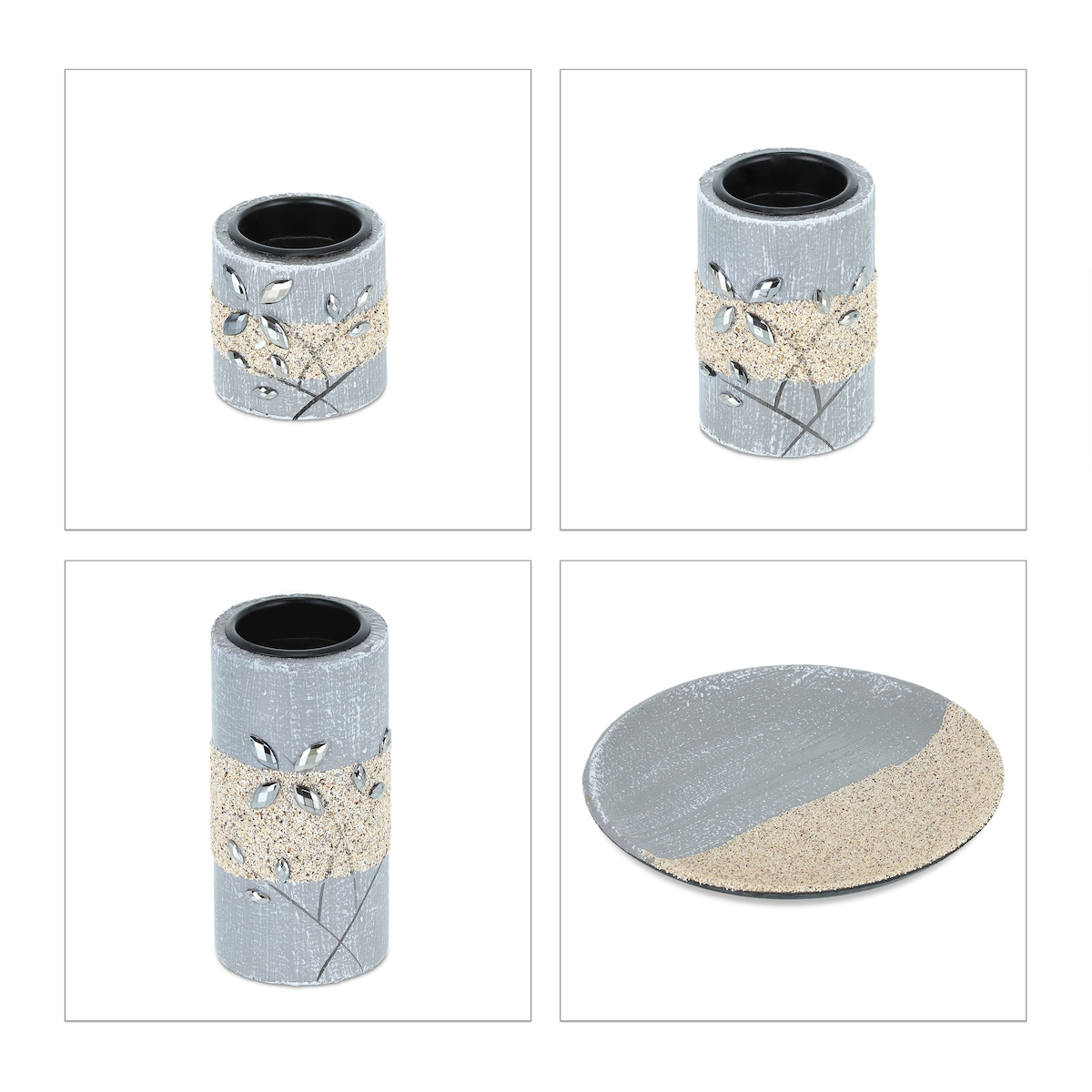 Relaxdays Teelichthalter Set, runde Dekoschale, mit Teelichtern und Steinen, Tischdeko Wohnzimmer, Esszimmer, grau/sand