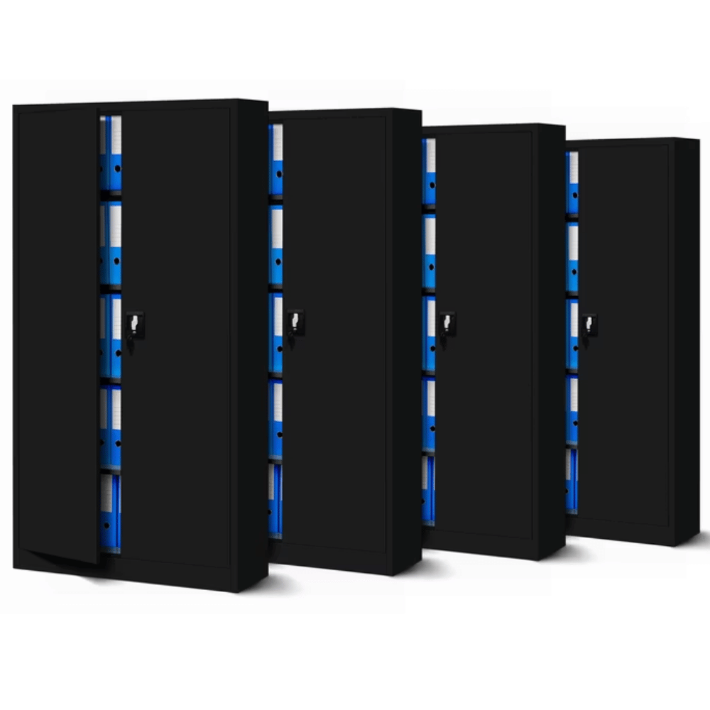 DELUKE MegaDeal 4x Aktenschrank abschließbar KADO - 5 Ebenen, Flügeltüren | Metallschrank Werkstatt Büroschrank aus Stahl, 195x90x40cm Schwarz