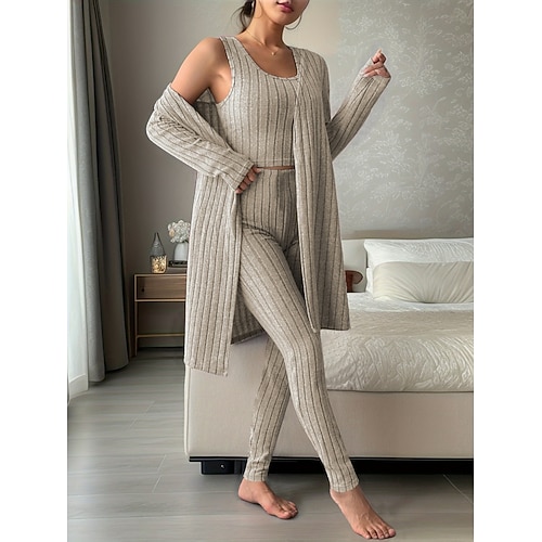 Per donna Set Pigiama Casual Comfort Colore Puro Elastico in vita Cardigan Pantalone Casa Quotidiano Manica Lunga Collo a U Nero Viola Fucsia Cachi Grigio Primavera Autunno Inverno Taglia piccola