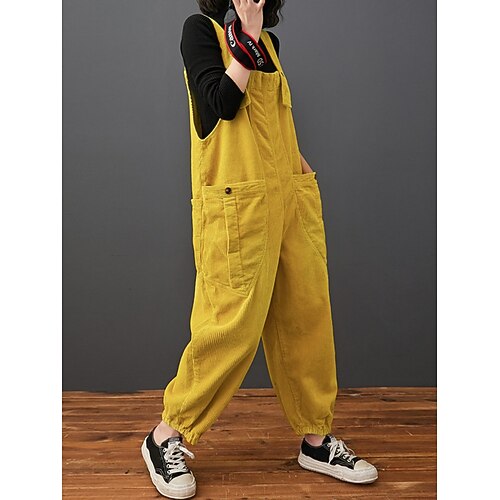 Per donna Normale Tuta Attivo Tinta unica Senza Maniche Harem Tasca Vacanza Quotidiano Vestibilità comoda Nero Giallo Rosso Primavera