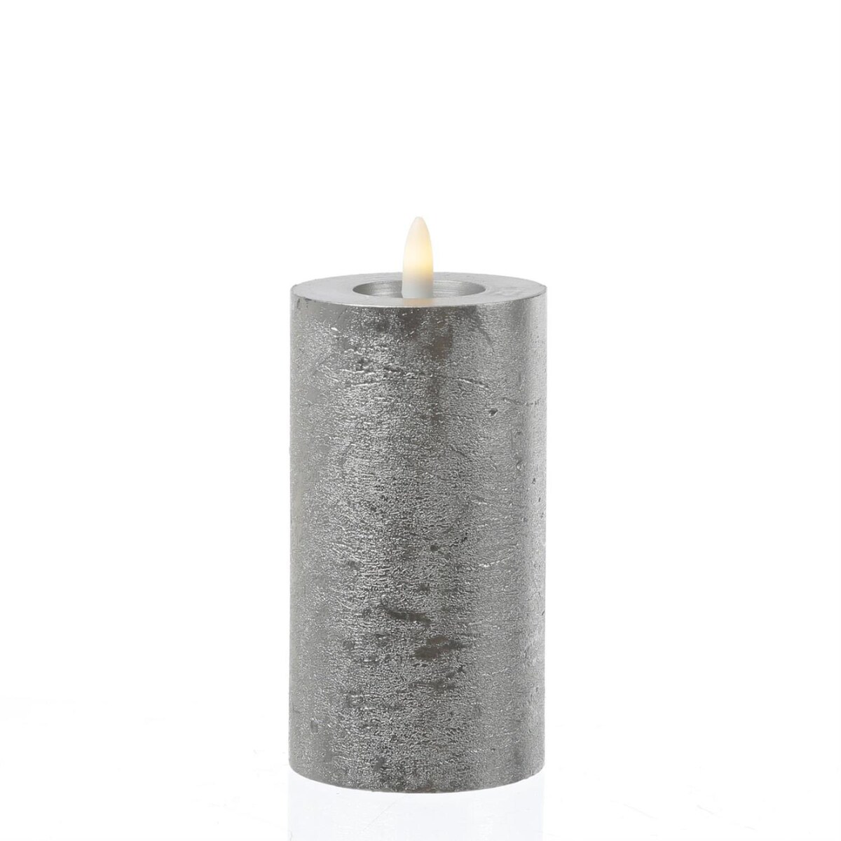 LED Kerze LINA Rustik Optik Echtwachskerze flackernd Timer H: 15cm D: 7cm silber