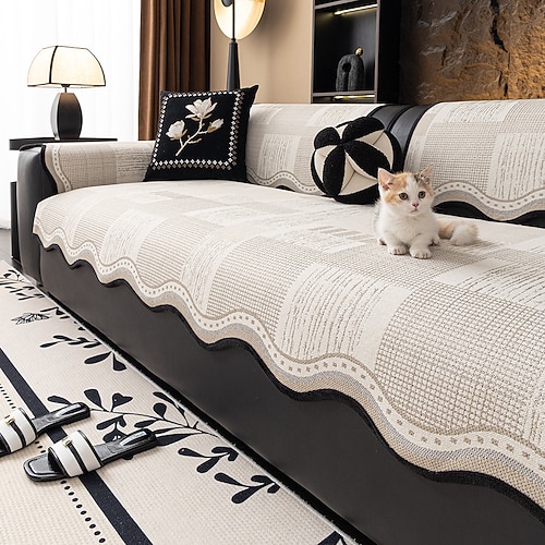 Fodera per cuscino del divano in lino e cotone di lusso per tutte le stagioni, protezione antiscivolo per divano dalla forma irregolare, elegante copridivano con fodera per schienale, adatta agli