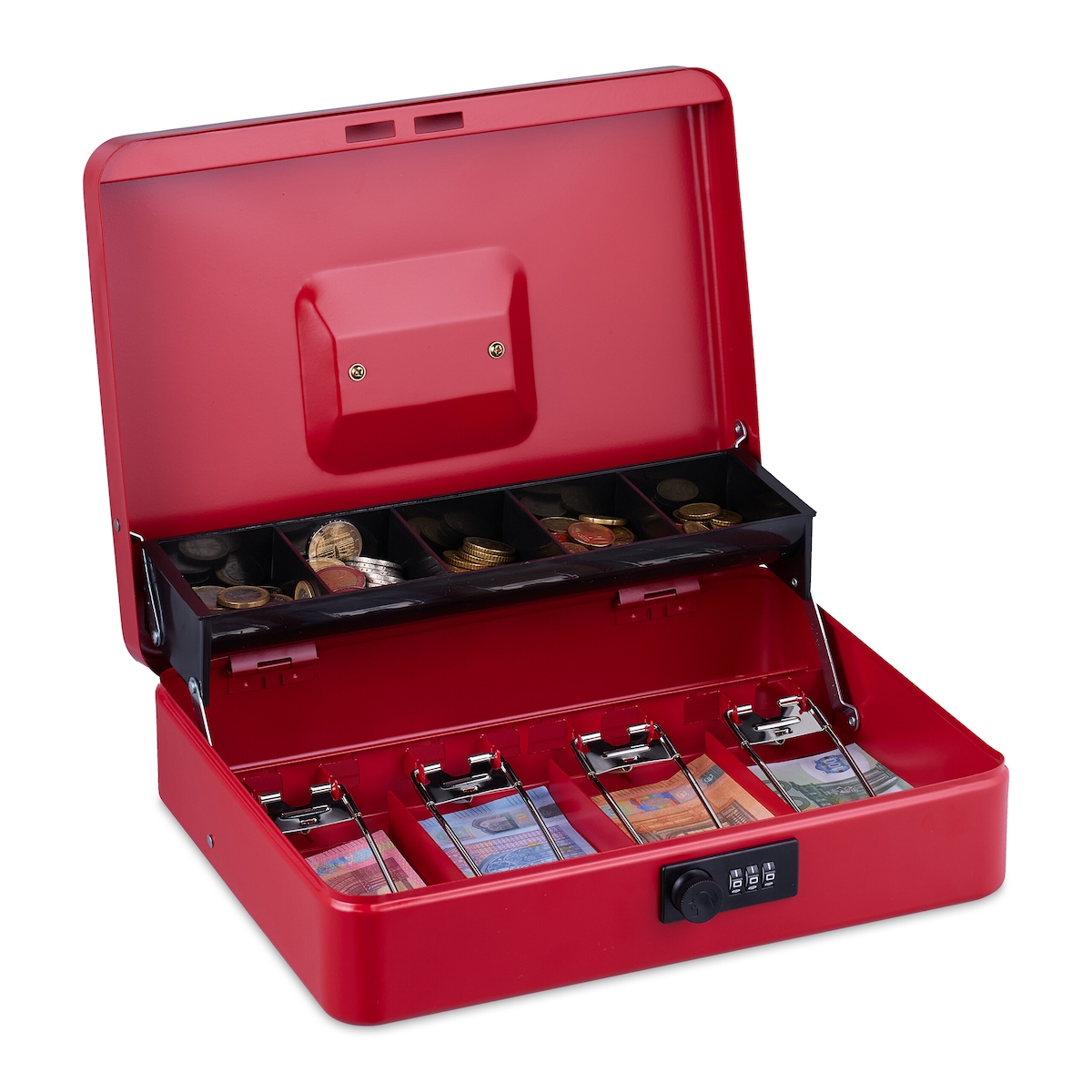 B2B Partner Holzspind S4 mit Beinen, 4 Abteile, 1871 x 1200 x 500 mm, zerlegt, Zylinderschloss, grau/rot