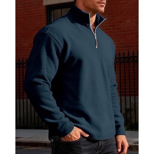 Per uomo Polo Polo con zip a un quarto Vacanza Streetwear Zip a un quarto Manica Lunga Moda Essenziale Tinta unica Cerniera Pile Autunno Inverno Vestibilità regolare blu navy Nero Kaki Grigio scuro