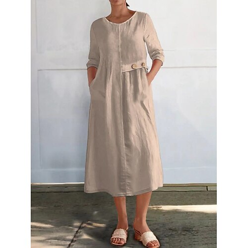 Per donna Abito Midi Misto cotone Abito a Tubino Vestito Casual Essenziale Moderno Quotidiano Weekend Vestibilità regolare Semplice Manica 3/4 Girocollo Nero Bianco Giallo Rosso Estate Primavera