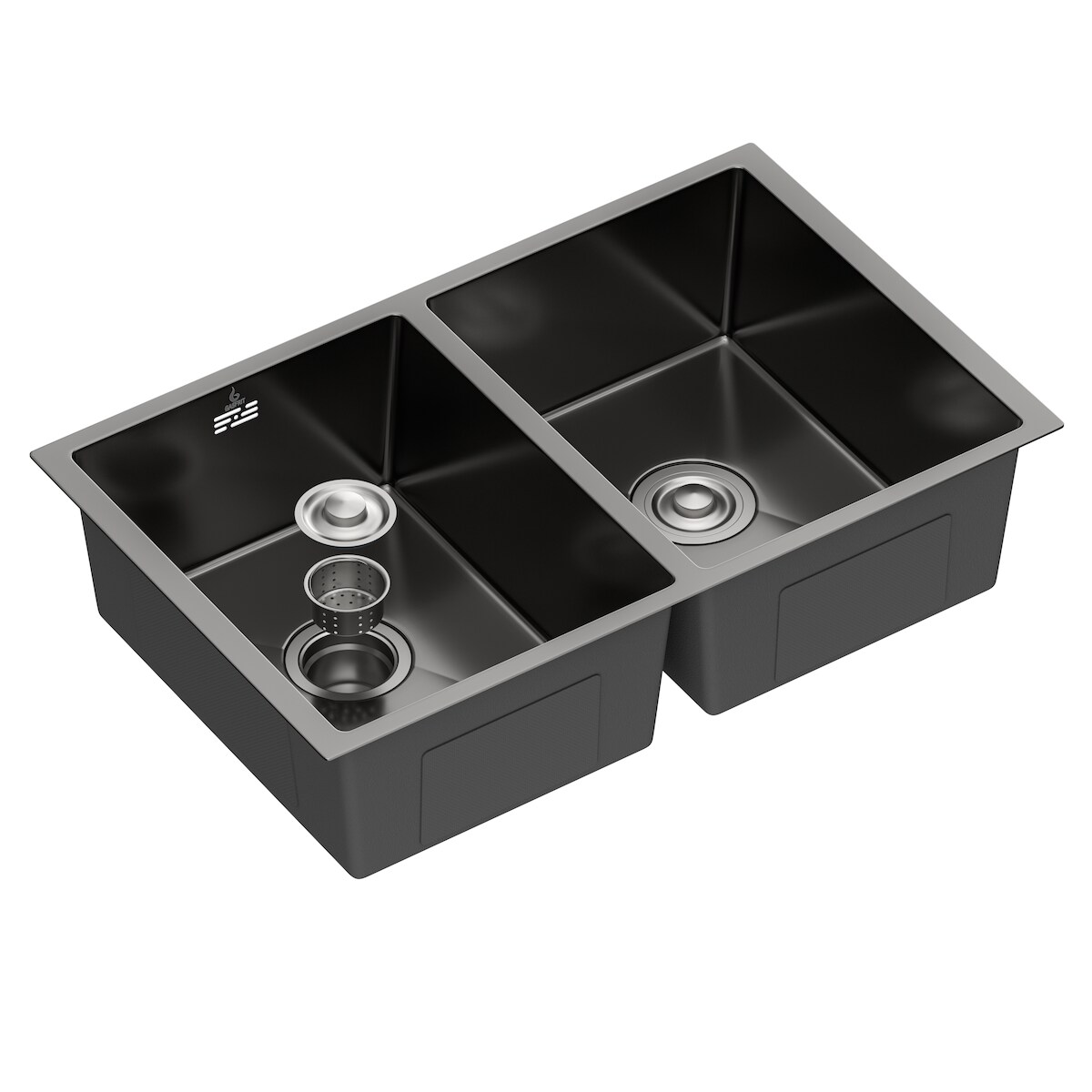 Gasfrit - Küchenspüle mit 2 Becken, mit Siphon, für Arbeitsplatte aus Edelstahl, Farbe Schwarz, ein Becken, 760 x 470 x 200 mm