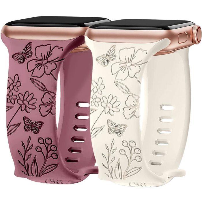 2x Armband für Apple Watch Series 11 10 9 8 SE 7 6 5 4 3 Ultra 2/3, 42mm-44mm-45mm-46mm-49mm Silikon Muster Schmetterling Weiß/Violett
