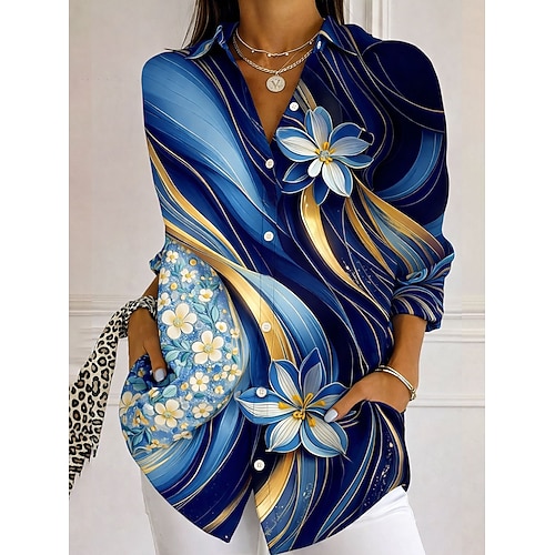 Per donna Camicia Camicia button-down Camicia casual Camicia da Spiaggia Bottoni Stampato Floreale Elegante Casual Manica Lunga Colletto a Camicia Top Regolari Quotidiano Lavoro Ferie Blu Estate