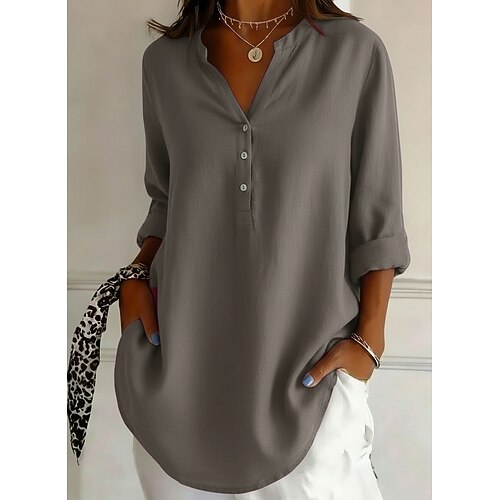 Per donna Camicia Camicia casual Blusa Bottoni Semplice Elegante Classico Moderno Manica Lunga Collo alla coreana Top Regolari Quotidiano Ferie Uscire Blu Nero Vino Rosso Verde Estate Primavera