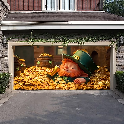 Festa di San Patrizio arazzo Copertura per porta del garage Grande appeso Elfo Carino 3D Da serata All'aperto Vacanze Sfondi di ripresa Yarda Arredamento per la casa